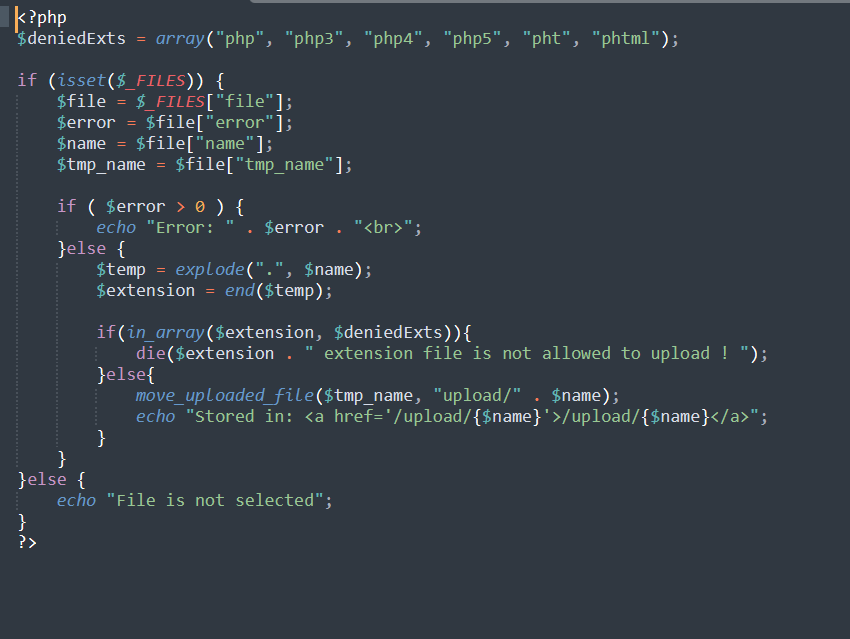 이를 분석해보면 php,php3,php4,hph5,pht,phtml 확장자는 필터링되고 나머지는 upload밑에 저장된다는 것 같다.