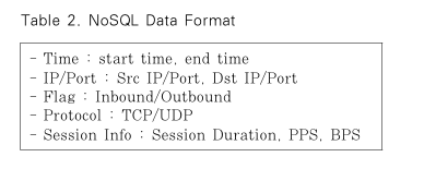 - 탐지 알고리즘에 필요한 데이터는 전처리 후 NoSQL DB에 저장.