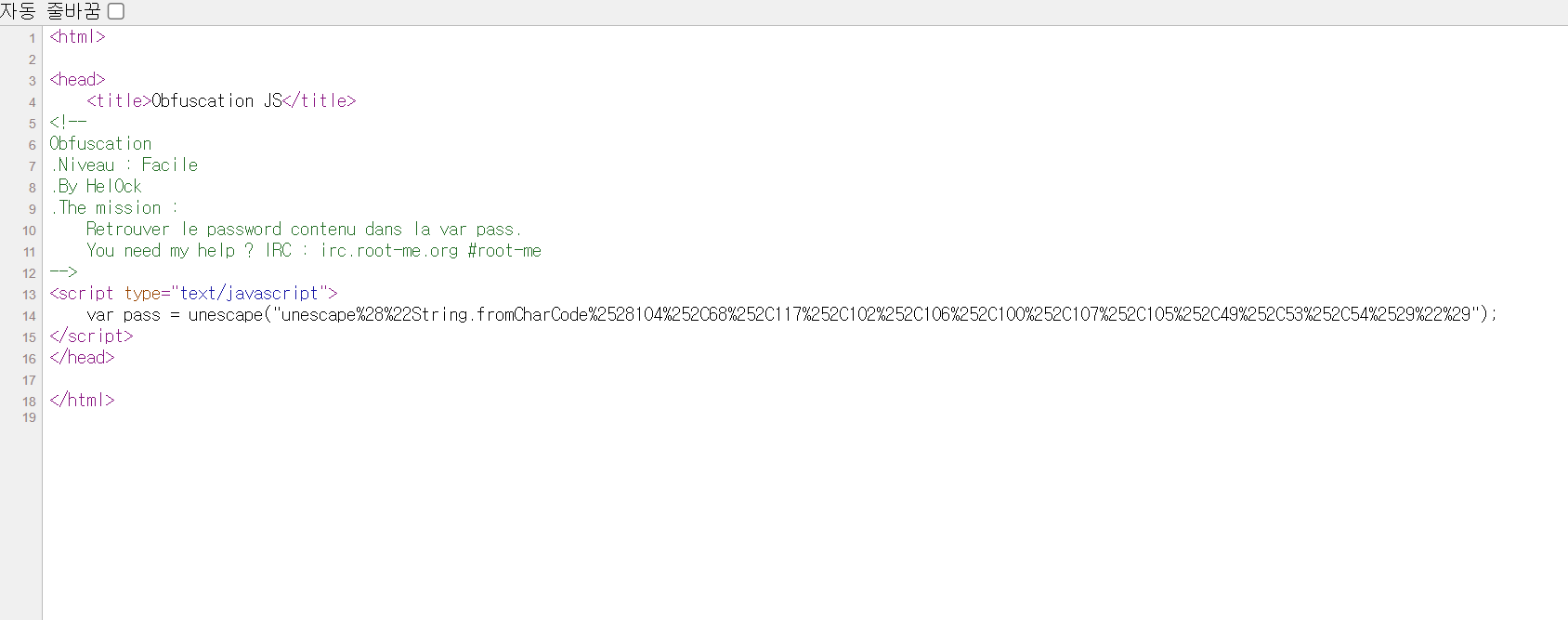 pass 뒤에 인코딩 된 값들이 나열되어 있다. 이 때 문제2는 문제1과 달리 unescape가 두 번 들어간 것을 확인할 수 있다.