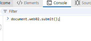 아이디와 패스워드는 아까와 동일하게 입력하고 아이디와 패스워드가 동일하지 않을 경우 실행되는 함수를 개발자도구를 열어서 콘솔창에 입력하였다.