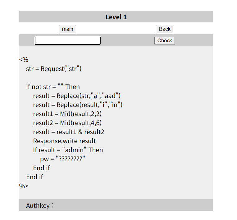 <% str = Request("str") If not str = "" Then result = Replace(str,"a","aad") result = Replace(result,"i","in") result1 = Mid(result,2,2) result2 = Mid(result,4,6)