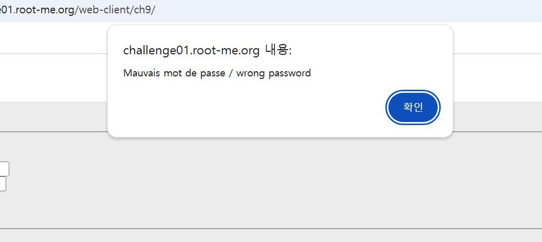 패스워드가 틀렸다는 창이 떴다. 힌트를 얻기 위해 페이지의 소스코드를 확인하기로 하였다.