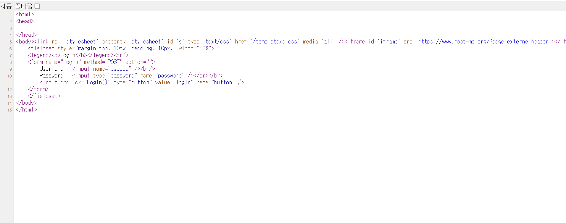 ctrl+u를 눌러 페이지의 소스코드를 확인하였지만 힌트가 될만한 요소들이 보이지 않는다.