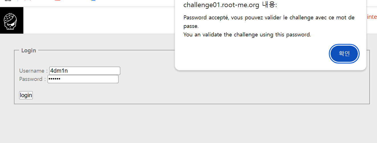 다시 로그인 창에 해당 값을 입력해보니 accpet되었다는 알림이 떴다.