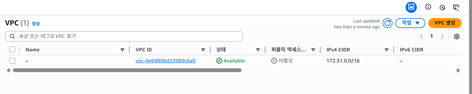 1. VPC 대시보드에 들어간 뒤 생성 버튼 클릭