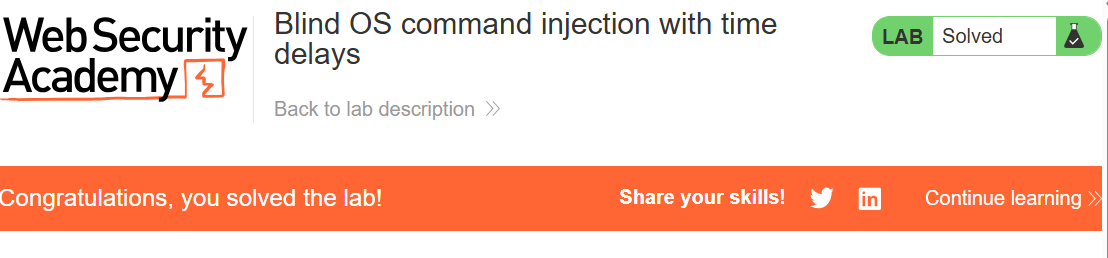 Lab: Blind OS command injection with time delays | Web Security Academy