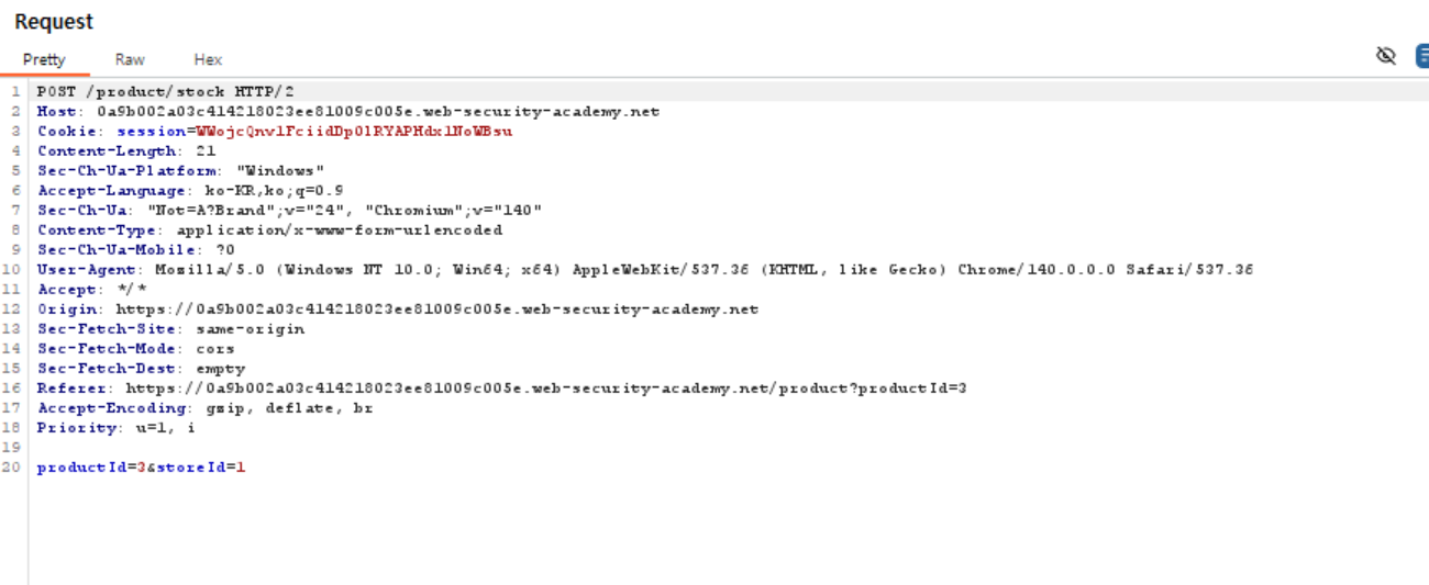 실습 링크에 들어가 상품의 상세 페이지를 누른 뒤 패킷을 확인하였다.