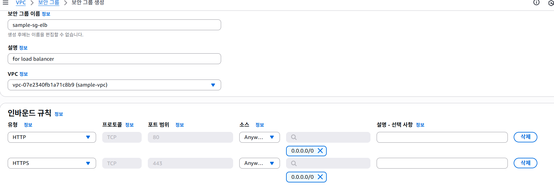 HTTP,HTTPS에 대해 모든 위치에서 접근 허용