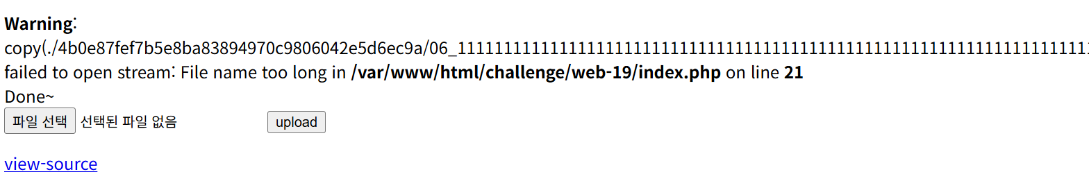 디렉터리 구조를 확인하기 위해 파일명을 길게 하여 에러를 내고 에러메시지를 확인하는 방법으로 문제 풀이