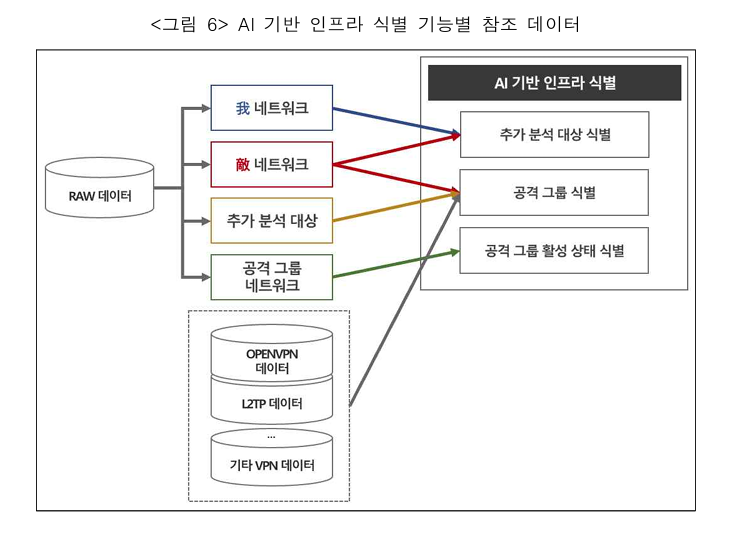 - 공격 그룹 데이터 - 사이버 사고 분석으로 확보된 인프라 정보인 기초 데이터와 적군 네트워크에서 유의미한 데이터 통신이 발생한 인프라 정보인 추가 데이터로 구성됨