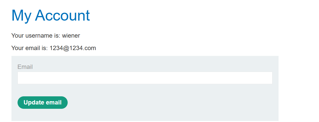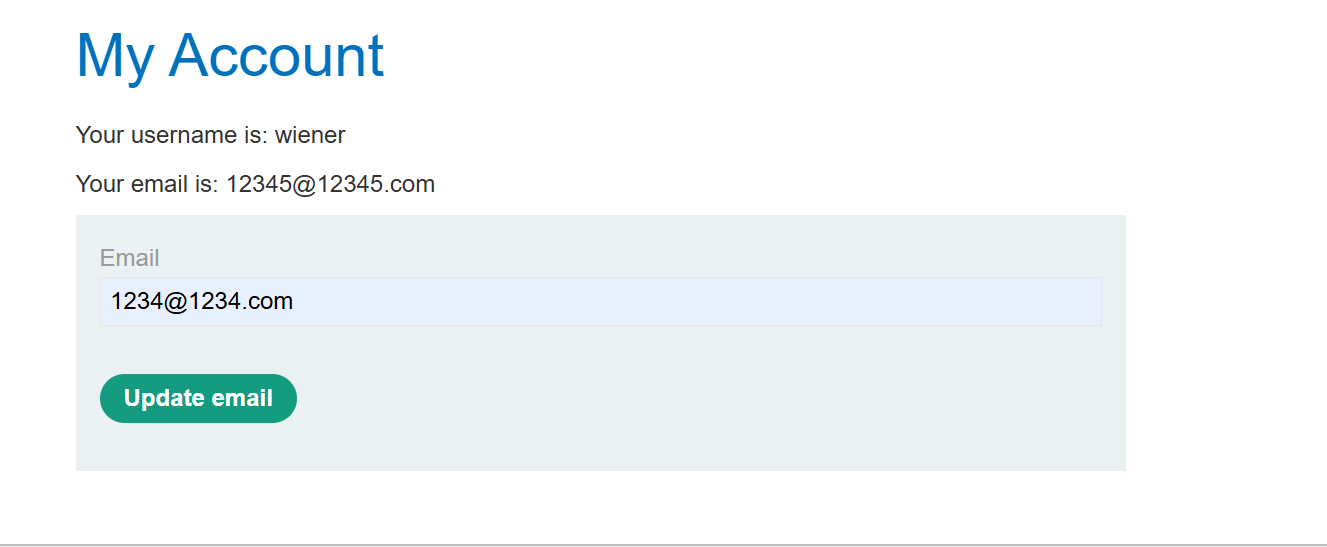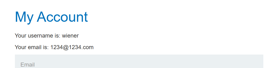 이메일 변경하는 부분을 repeater로 보내서 request로 변경하면 post→GET 요청이 되고 아까 입력했던 이메일 주소가 뜬다.